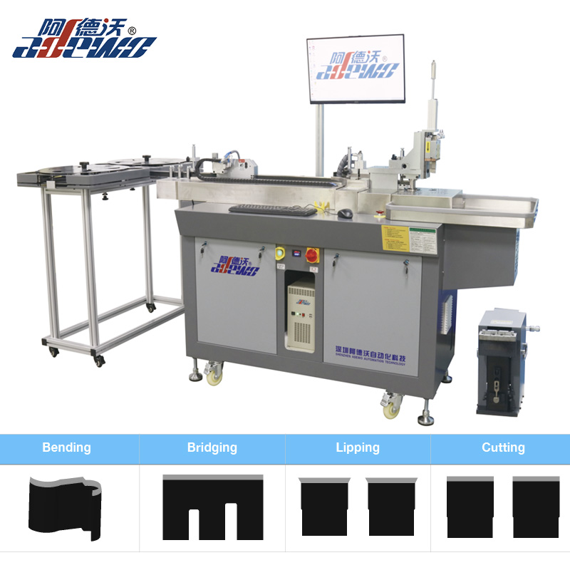(ABM-8142A) Alapmodell sztriptíz acélszabály Az Auto Bender tartalmazza a funkciókat: hajlítás, híd, lippelés és vágás. Támogatott acélszabály vastagsága 2pt, 3pt, 4pt, magasság 23,80-60 mm. A China Adewo -nak két gyárja van Kínában, amelynek specializálódása és gyártásának fejlesztésére és gyártására szakosodott berendezések, beleértve a CNC lézeres vágógépet, az automatikus hajlítógépet, a vágógépet és így tovább a csomagolási iparban.