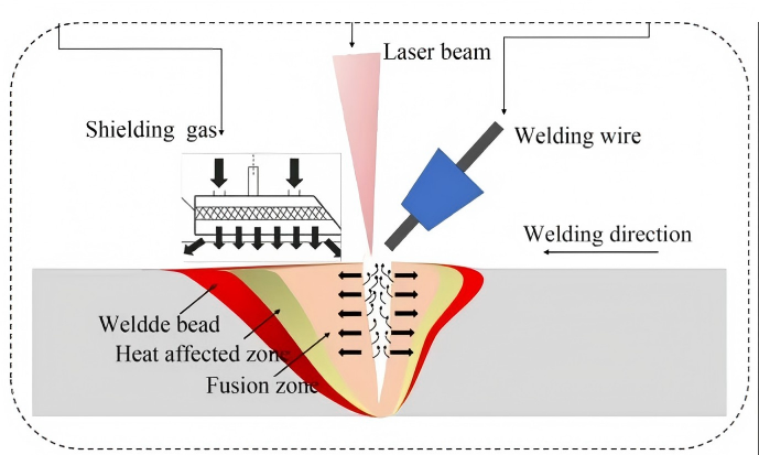 A huzaladagoló hegesztés minimalizálja a hőhatás zónáját és csökkenti a torzítást és a maradék feszültséget, plmély behatolást tesz lehetővé, és tA töltőhuzal segíthet finomítani a hegesztett fém mikroszerkezetét. (Referenciaként a huzaladagoló hegesztési minta)